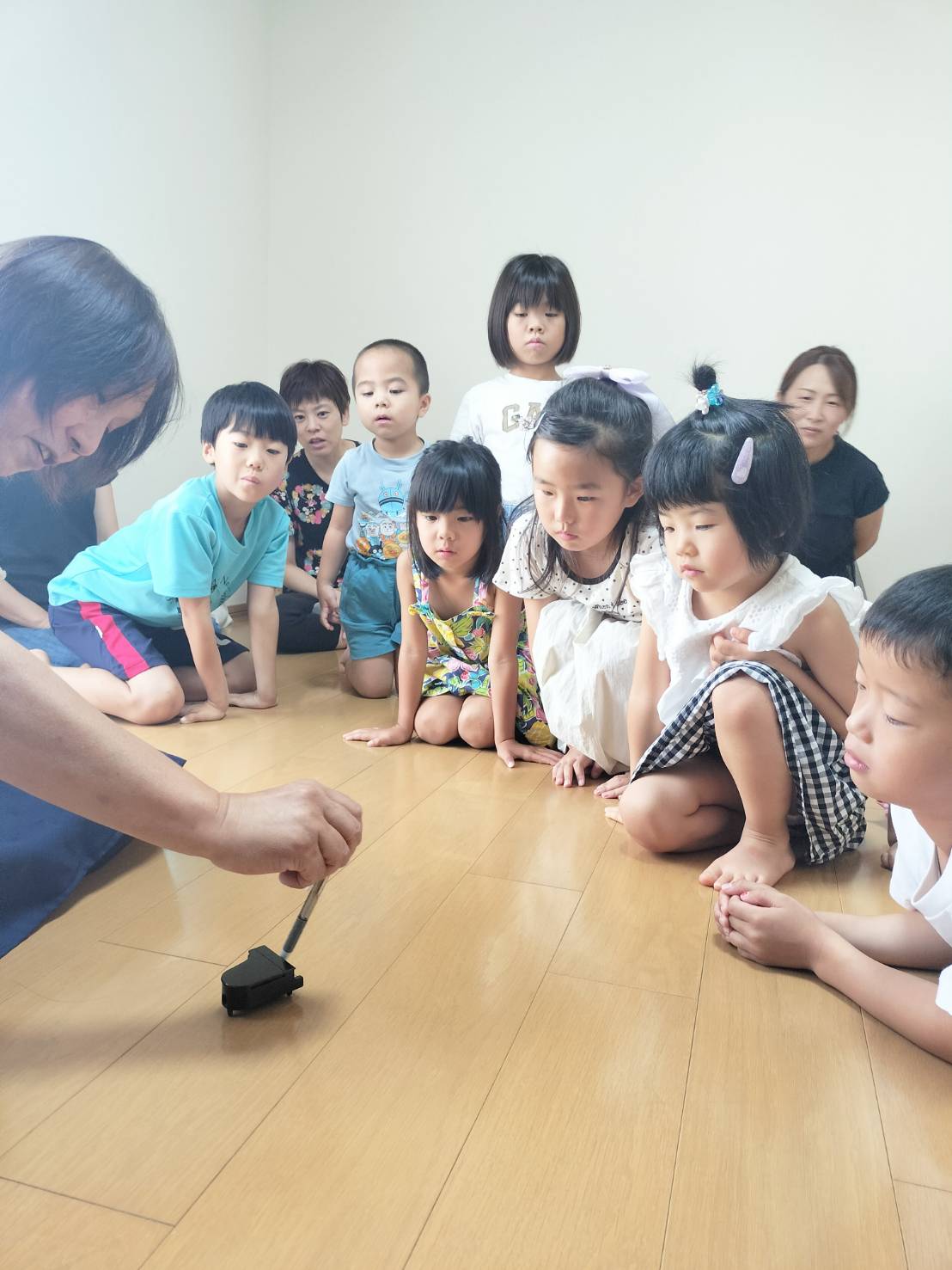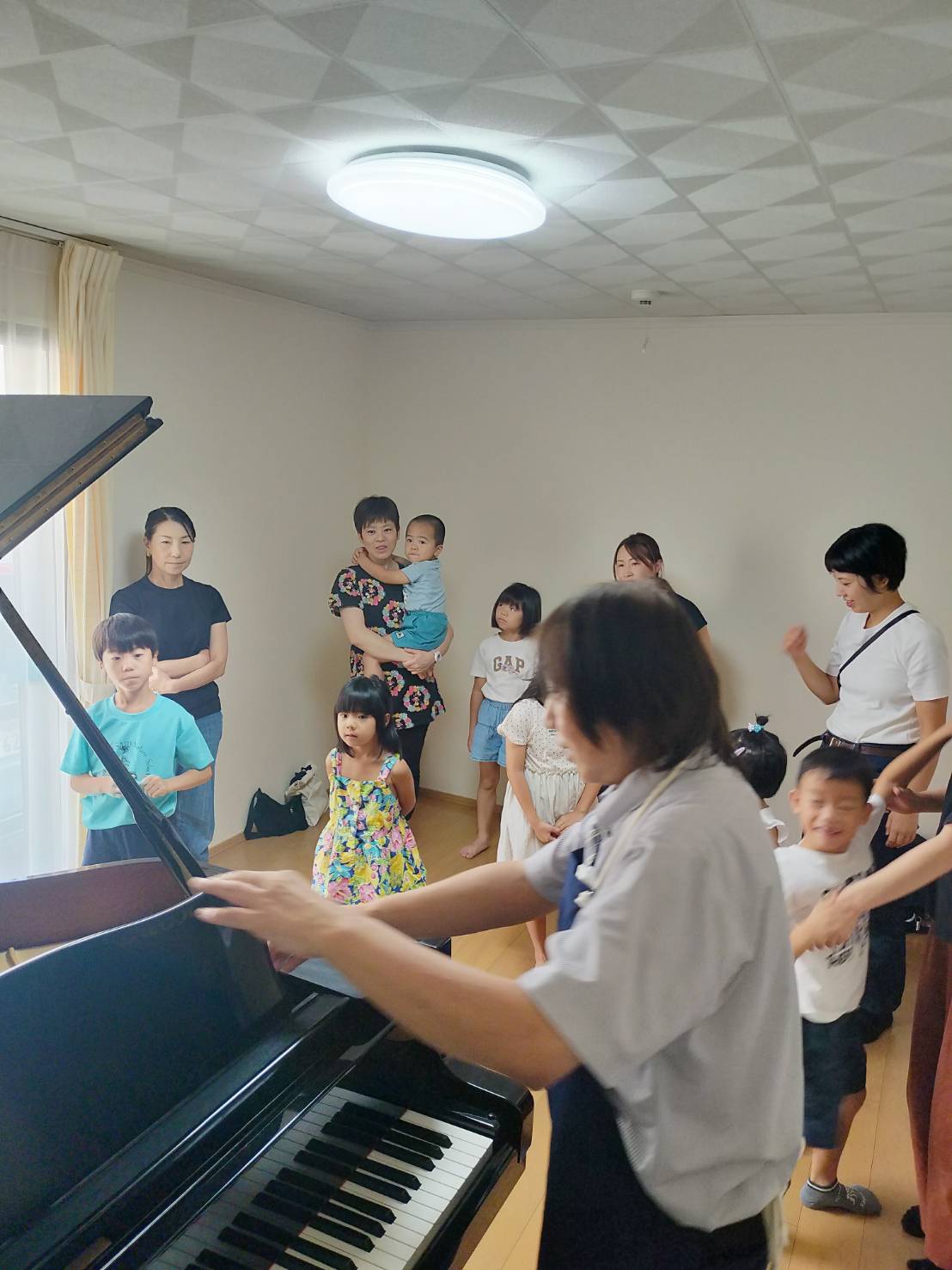 小さなグランドピアノを取り出し、子どもたちを引きつけるテクニック、さすがAさん☆彡