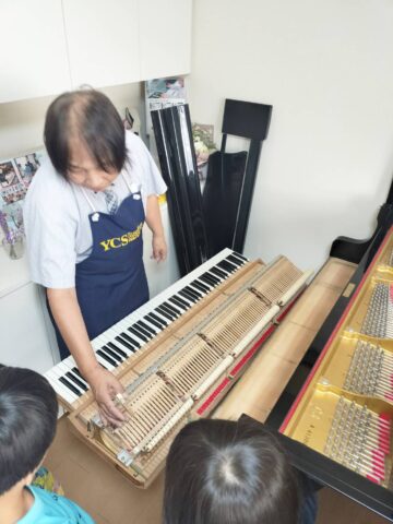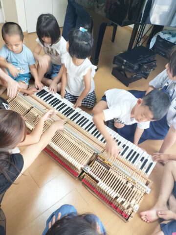 おはようの歌と自己紹介を兼ねたお名前呼びの後は皆さんお待ちかねのピアノ解体ショー