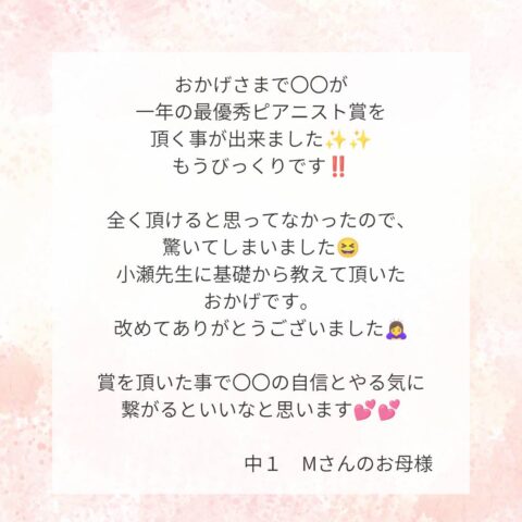 小学5年生の夏の発表会を最後にお教室を卒業したMさん(*^_^*)